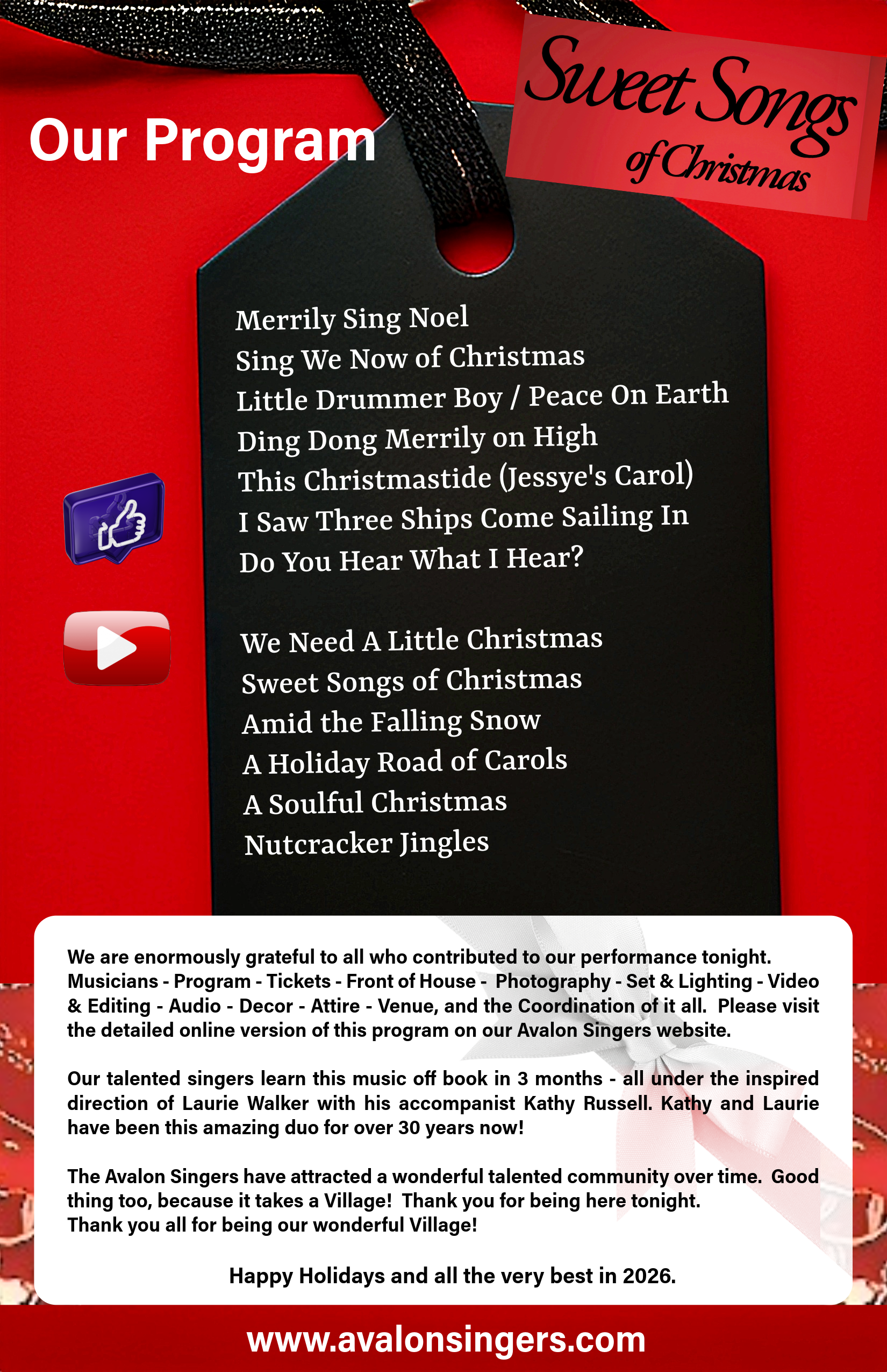 Thank you to Rebekah Haight, Paul and Lydia's daughter - also a former Avalon Singer!